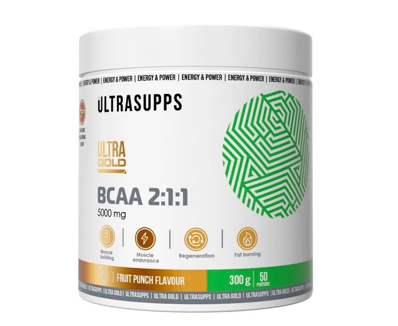 BCAA (БЦАА, бцаа) UltraSupps Ultra Gold BCAA 2:1:1 300 g (Фруктовый пунш)